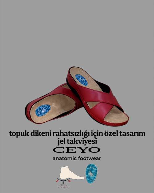 Ayağın bastığı üst katman odacığında bulunan yumuşak poliüretan jel CEYO nun üstün ayak anatomisi ile birlikte mükemmel bir uyum içinde çalışır., Yürüme esnasında topuğu rahatlatırken, alt katmanda bulunan yüksek yoğunluklu köpük yapısı sayesinde her adımda ekstra esneme ve rahatlık sağlar.