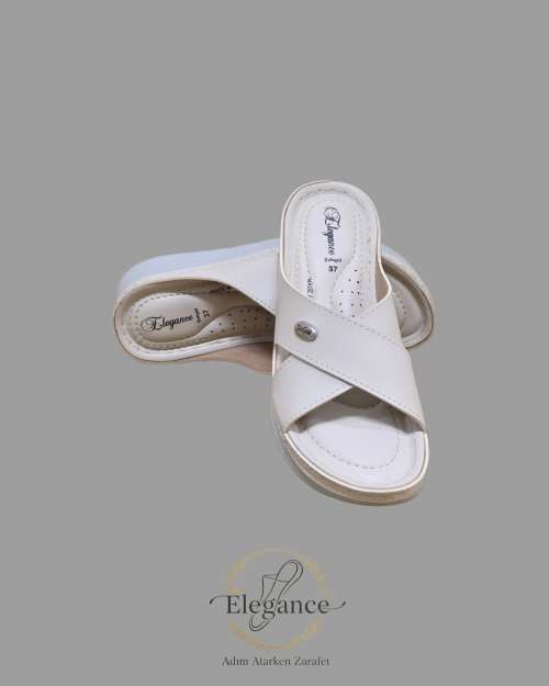 ELEGANCE 5702, vegan deri ve ortopedik poliüretan tabanı ile hem doğaya duyarlı hem de ayak sağlığını ön planda tutan bir tasarım sunuyor. Çapraz bantlı özel formu, yaban ayağını tam kavrayarak maksimum konfor sağlarken, estetik çizgileriyle evde ve sokakta stilinizi tamamlıyor.